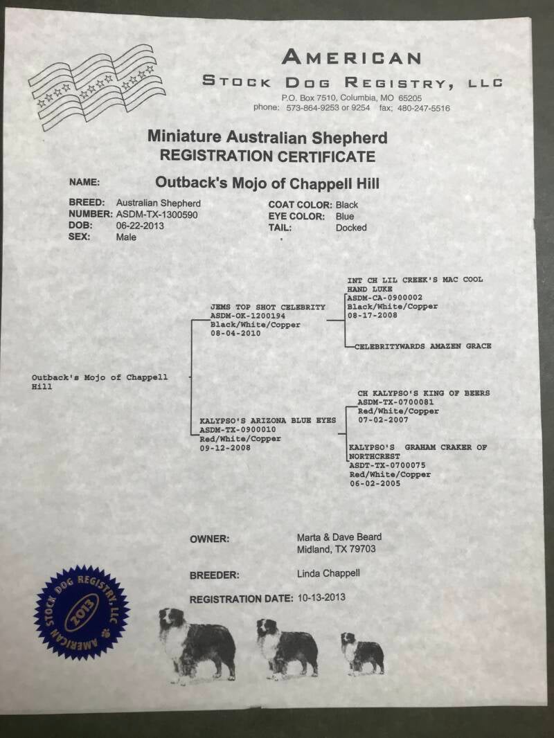 Tango is our up and coming stud. He came to us from KNJ Aussies. Hopefully will be a great mini size.